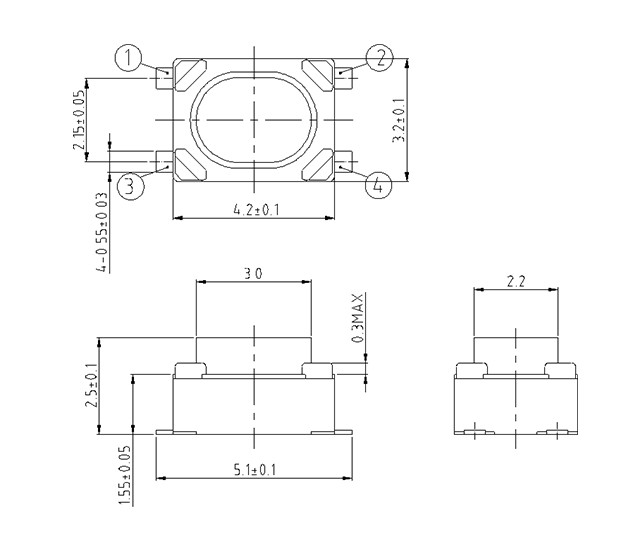 尺寸: 4.2X3.2mm 產品分類: 輕觸開關 - A系列 / 迷你型 應用 ※ 汽車音響, 汽車導航系統, 無鑰匙進入系統 ※ 用于操作各種電子設備比如音響 ※ 設備,汽車單元,通訊設備, 測量儀器等 特點 ※ 緊湊的尺寸有助于應用單元更小更輕 ※ 大的按鈕表面有更優秀的操作性和安裝性 ※ 用12mm寬的編帶包裝