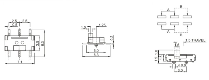 撥動開關,微型撥動開關,迷你型撥動開關,貼片式撥動開關,插腳撥動開關,六腳撥動,七腳撥動,SMT撥動開關,滑動開關