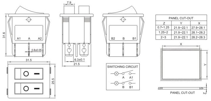 25*31.5 紅色帶燈 船型開關(guān) 蹺板開關(guān) IO電源開關(guān) 1.額定工作電壓、電流Rating 3A/6A/15A 250V 2.使用溫度范圍Temperature -25+85℃ 3.接觸電阻Contact Resistance <0.03Ω 4.動(dòng)作力Actuating Force 1.3+0.5N 5.絕緣電阻Insulation Resistance >100MΩ 6.壽命(switching Life) 10000次